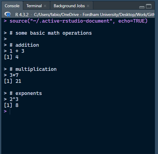 R can perform just about any mathematical operation. At the same time, let’s see how to run some code: