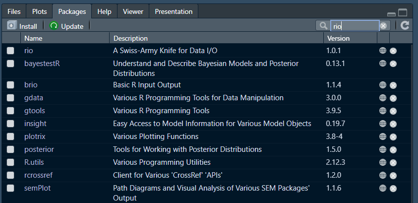 To see all of the packages installed in your RStudio, you can navigate to your viewer pane and select “packages”.