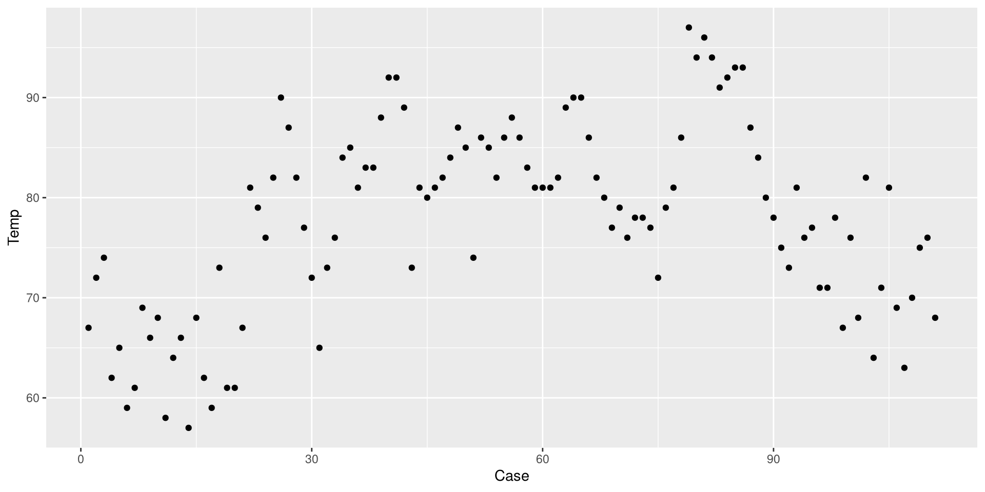 $ Temp : int 67 72 74 62 65 59 61 69 66 68 ...